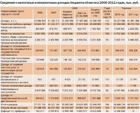 В Законодательном собрании и правительстве области уже подготовлены предварительные цифры. Доходы областного бюджета определились следующим образом: на 2009 год в объеме 52-х миллиардов 641 миллиона рублей, 2010 год - 58 миллиардов 608 миллионов рублей, на 2011 год - 69 миллиардов 933 миллиона рублей. Рост объема запланированных на 2009 год собственных доходов к учтенному бюджету 2008 года составляет 112% (в 2008 году рост объема доходов составил 21% !).