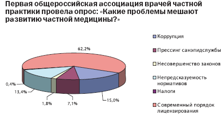 Основные причины, сдерживающие развитие частных медицинских услуг в России, внешние. Обусловлены они монополистической позицией государства к системе здравоохранения. Как результат — отсутствие с его стороны поддержки частной медицины и создание неравных конкурентных условий. По мнению экспертов, основной проблемой на пути развития частной медицины Оренбургской области являются высокие административные барьеры, особенно на стадии лицензирования.