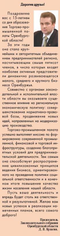 2010 г. 15 лет исполнилось со дня образования Торгово-промышленной палаты Оренбургской области.