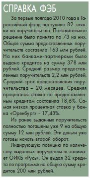 На практике…Андрей Ефремов, министр экономического развития, промышленной политики и торговли Оренбургской области: «Малый бизнес в экономике Оренбуржья является тем базовым элементом, который не только не снизил свои объемы производства в кризисный 2009 год, но и показал положительную динамику. И наша задача его поддерживать и впредь. Одна из главных проблем малого бизнеса – проблема затрудненного доступа к банковским и иным кредитным ресурсам. Как правило, основной аргумент, аргументирующий отказ банка: неспособность субъекта малого предпринимательства обеспечить гарантированный возврат предоставленного кредита. Сегодня во многих регионах уже работают Гарантийные фонды поддержки малого предпринимательства. Нашему фонду чуть больше года, но он уже показал свою жизнеспособность. Его услуги сегодня востребованы и представителями бизнеса, и кредитными учреждениями области. Помимо пяти банков, которые работали с фондом ранее, в июле по результатам конкурса добавились еще шесть банков-партнеров. Социальный эффект для региона также заметен. Благодаря работе Гарантийного фонда сохранено порядка 2000 рабочих мест и создано еще 500».
