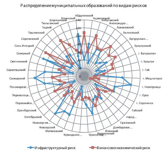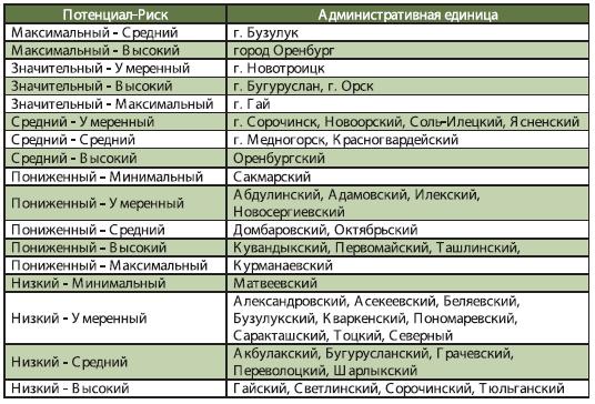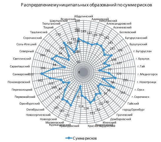 Таким образом, МО с максимальным риском Орск, Медногорск, Новотроицк, с минимальным Соль-Илецкий, Абдуллинский и Тоцкий районы.