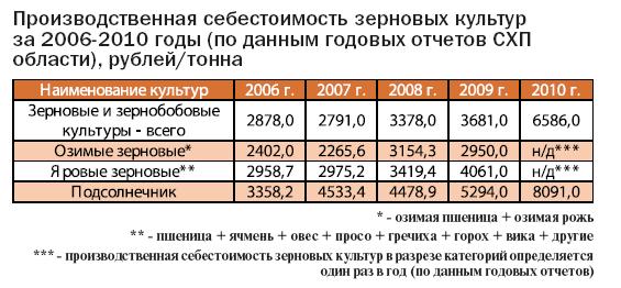 Арифметика 2010-го аграрного года в Оренбургской области довольно пессимистична: 46 % посевной площади погибло из-за засухи, средняя урожайность зерновых составила 6,5 ц/га, в тоже время в некоторых хозяйствах она не превышает 2,5 ц/га. Средняя себестоимость тонны зерна, по данным Министерства сельского хозяйства, пищевой и перерабатывающей промышленности Оренбургской области, в этом году составляет 6586 рублей, что практически вдвое выше себестоимости прошлого года. Не спасают производителей и высокие, по сравнению с прошлыми годами, закупочные цены.