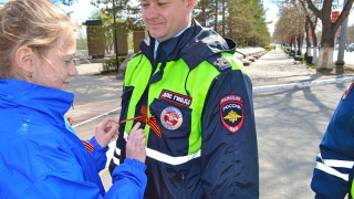 Автоинспекторы ГИБДД вручали оренбуржцам геогриевские ленточки
