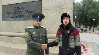 Казаки возложили цветы к памятнику Оренбургскому казачеству