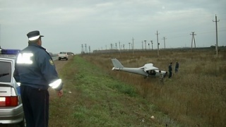 В Оренбургской области инспекторы ДПС стали очевидцами вынужденной посадки самодельного самолета
