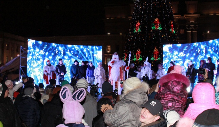 Самое массовое мероприятие состоялось вечером на площади Куйбышева. Посмотреть на то, как Дед Мороз зажигает огни на главной городской елке, собрались тысячи самарцев. Сюда приходили целыми семьями, приводили детей, которые с нетерпением ждали встречи с волшебством.